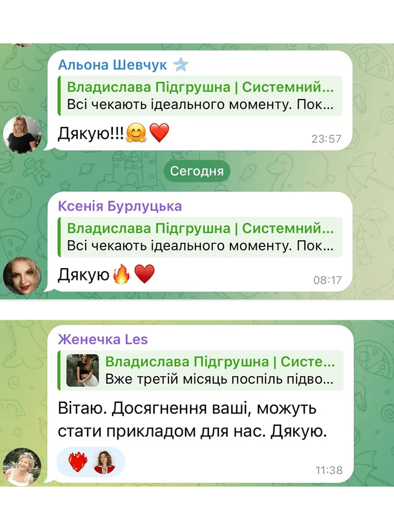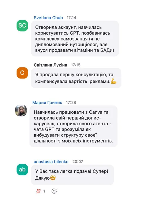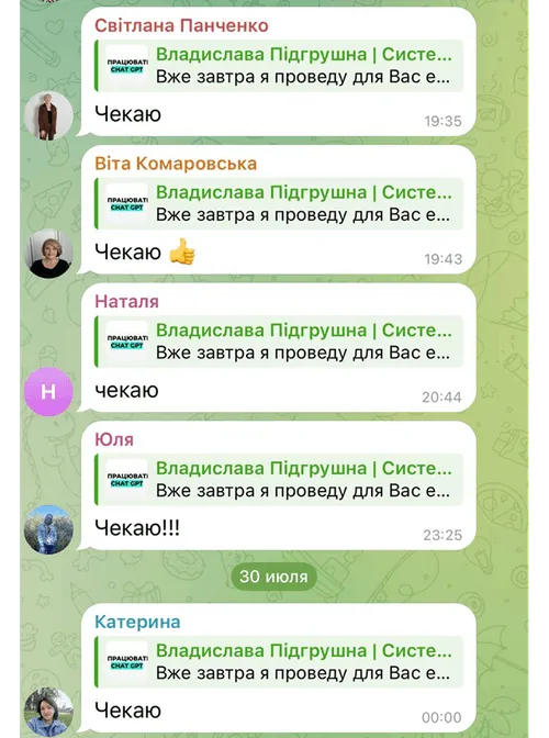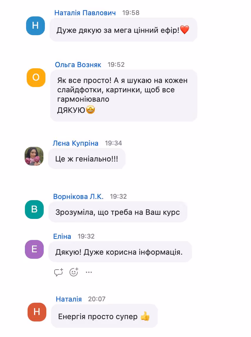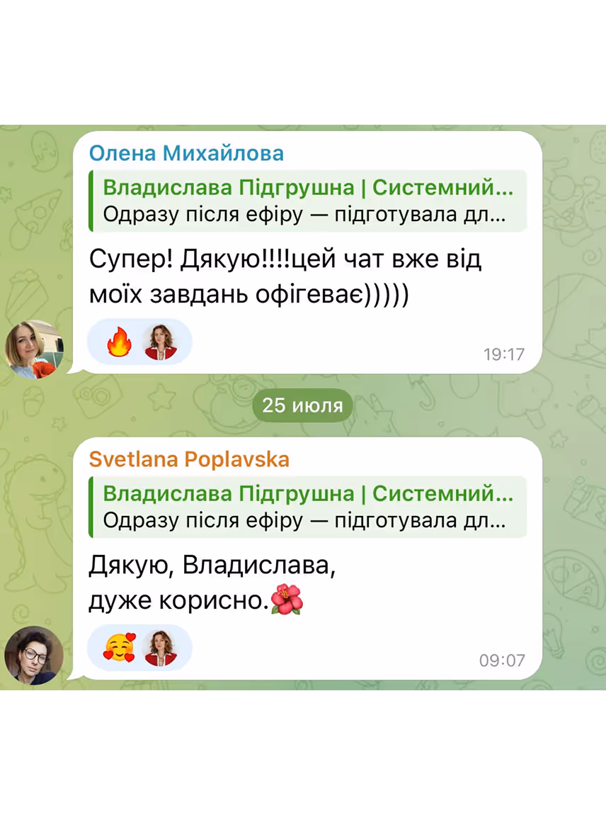 Ви отримуєте доступ до записів уроків в Телеграмі і можете передивлятися їх стільки разів, скільки потрібно